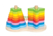Разноцветная пирамидка, необычной формы, детали которой способствуют развитию мелкой моторики, концентрации и координации движений. В процессе игры ребенок учится распознавать цвета и формы.